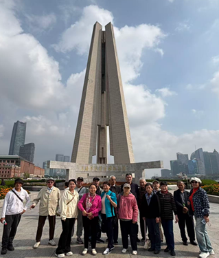 在中心退管分会小组张婷老师的陪同下,上午,退休教师前往外滩,欣赏万国建筑群的厚重与现代高楼的挺拔,迎着黄浦江畔的微风,大家边走边聊,回忆往昔岁月,感慨城市发展的日新月异,站在人民英雄纪念塔前,缅怀先烈,致敬历史,在庄严肃穆的氛围中感受家国情怀。
