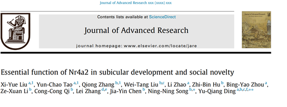 海马下托作为海马的主要输出节点,在学习记忆和空间导航等高级脑功能中具有重要地位。然而,关于下托神经元在发育过程中如何获得特定的分子身份,以及其在社交行为中的功能尚不清楚。近期,复旦大学丁玉强教授/宋宁宁副研究员团队在 Journal of Advanced Research 在线发表题为 “Essential function of Nr4a2 in subicular development and social novelty” 的研究工作,全面阐明了转录因子Nr4a2在下托神经元分子特征形成及其功能维持中的关键调控作用。