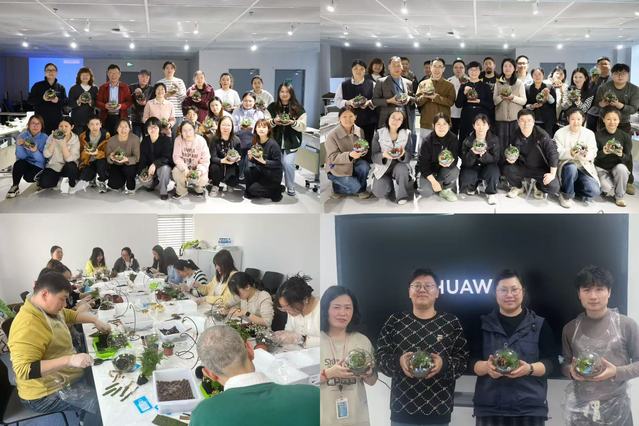 活动最后,各位老师纷纷捧着自己的作品合影留念,一张张笑脸与一盆盆绿意交相辉映,定格成这个春天最温暖的画面。这些微景观瓶将被大家带回办公室或家中,成为日常工作生活中的一抹绿色慰藉,时刻提醒着每一位职工:在严谨求实的科研道路上,也别忘了心怀诗意,拥抱自然。